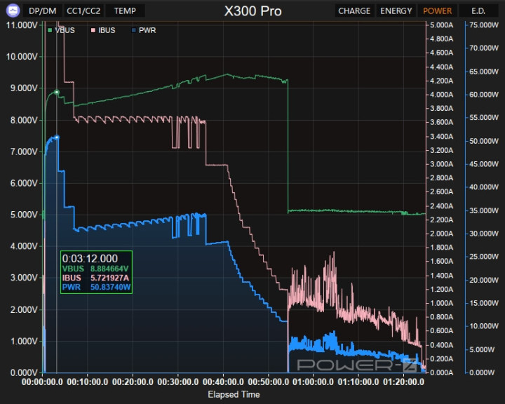 主要充电区间是31到34W,54分钟显示100%,然后进入涓流,1小时24分断充。