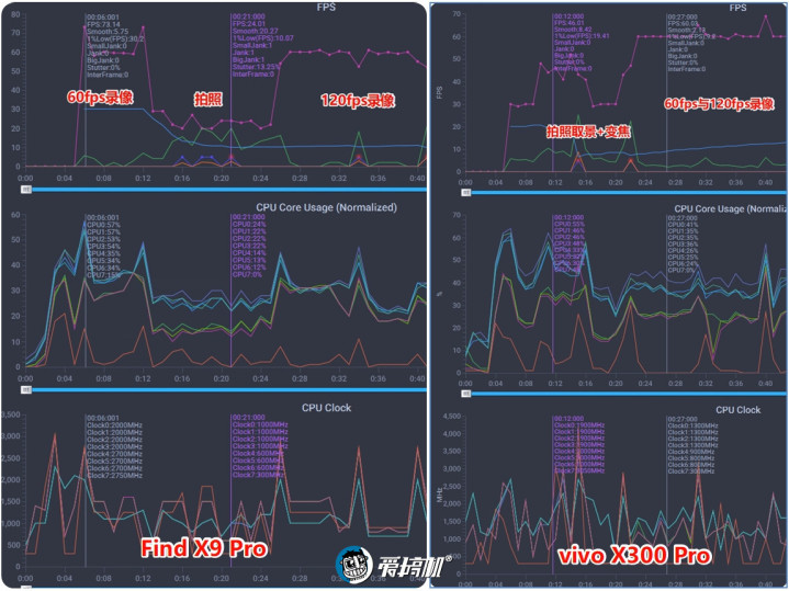 功耗没大多少,但变焦体验就直接领先安卓友商们一个身位,妙啊(在小屏的X300标准版上,效果会更加明显)(大家在60fps和120fps录像时,都是能维持60fps预览的)。
