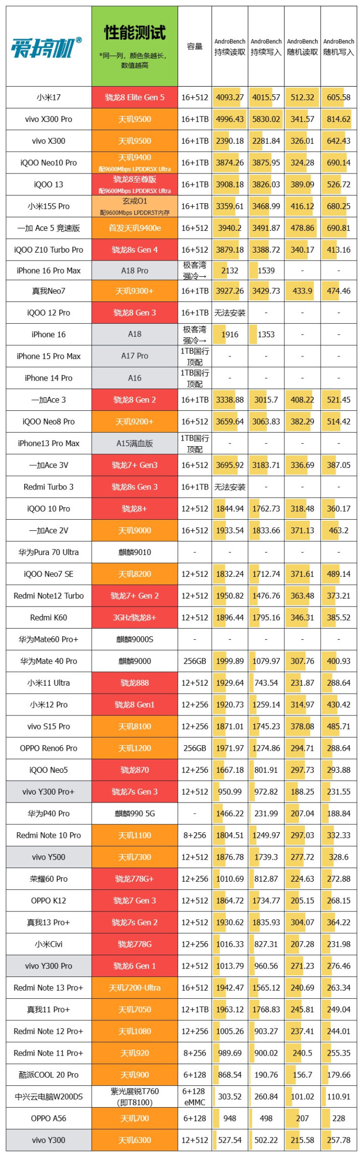 vivo X300 Pro皇帝版的实际随机写入性能高的夸张。在顺序读写测试中,毫无悬念地大幅刷新之前的纪录,也大幅抛离同代的小米17。但有一说一,最近几年的瓶颈都在CPU上,超强的内存和闪存性能,对日常的影响很小。