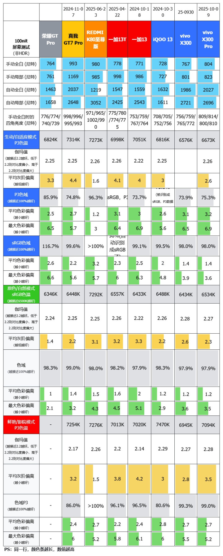 亮度均匀性和色准都不错,都超过了使用2K京东方Q10珠峰屏的iQOO 13(当然,iQOO的优势是2K屏的精细度)。