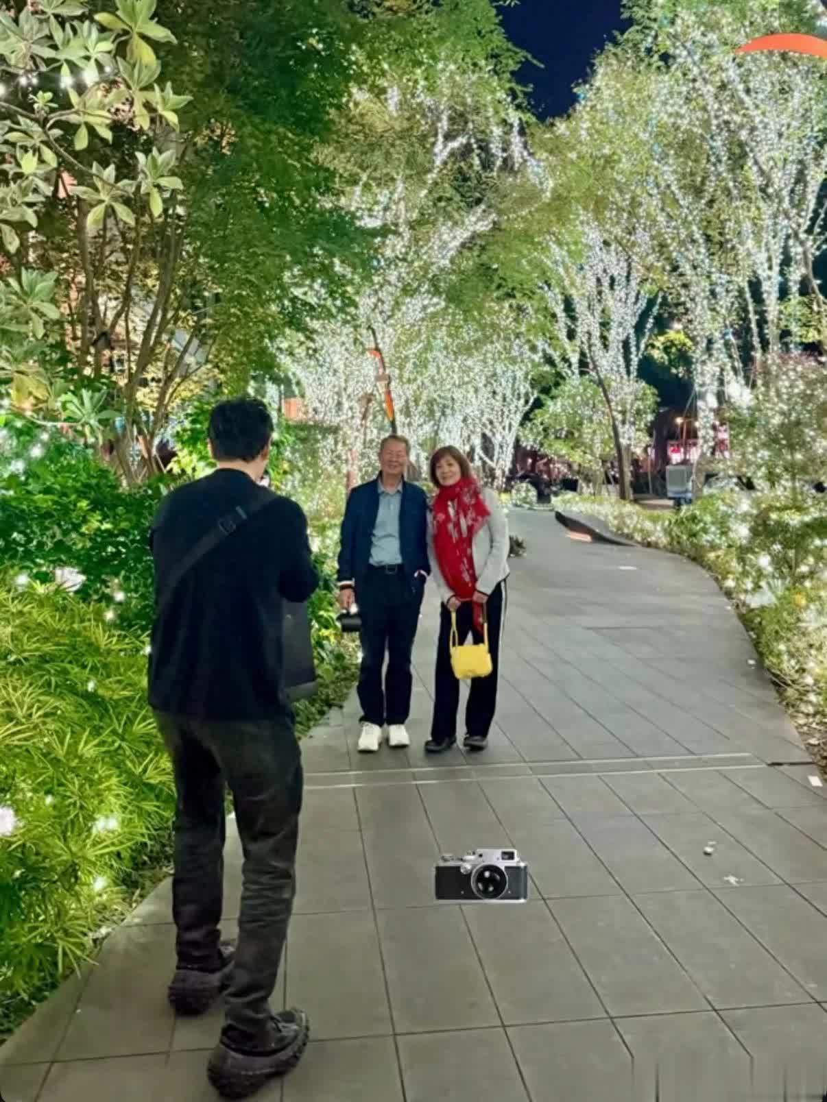 照片中,一家人在外面逛到漂亮的夜景时,Alan就当起摄影师给岳父岳母拍合影,看Alan的拍照姿势真的很用心了,绝对不是敷衍了事的样子。陈爸陈妈也开心配合,面带笑容摆好pose,一家人相处非常融洽。而没有出镜的陈乔恩则拍了他们互动的画面,记录下这温馨有爱的画面。